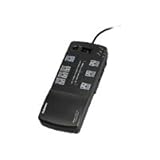 Easy back-up power and added surge protection with 325VA. 7 Outlets with auxiliary phone and network line protection. After outage run time of 3 to 8 minutes for safe shut down and 1840 Joules for everyday protection. 6' power cord with 360 degree rotating plug for easy cord management. Sliding safety covers to protect unused outlets. $50,000 connected equipment warranty. Dark gray, 6"x15-1/8"x3".